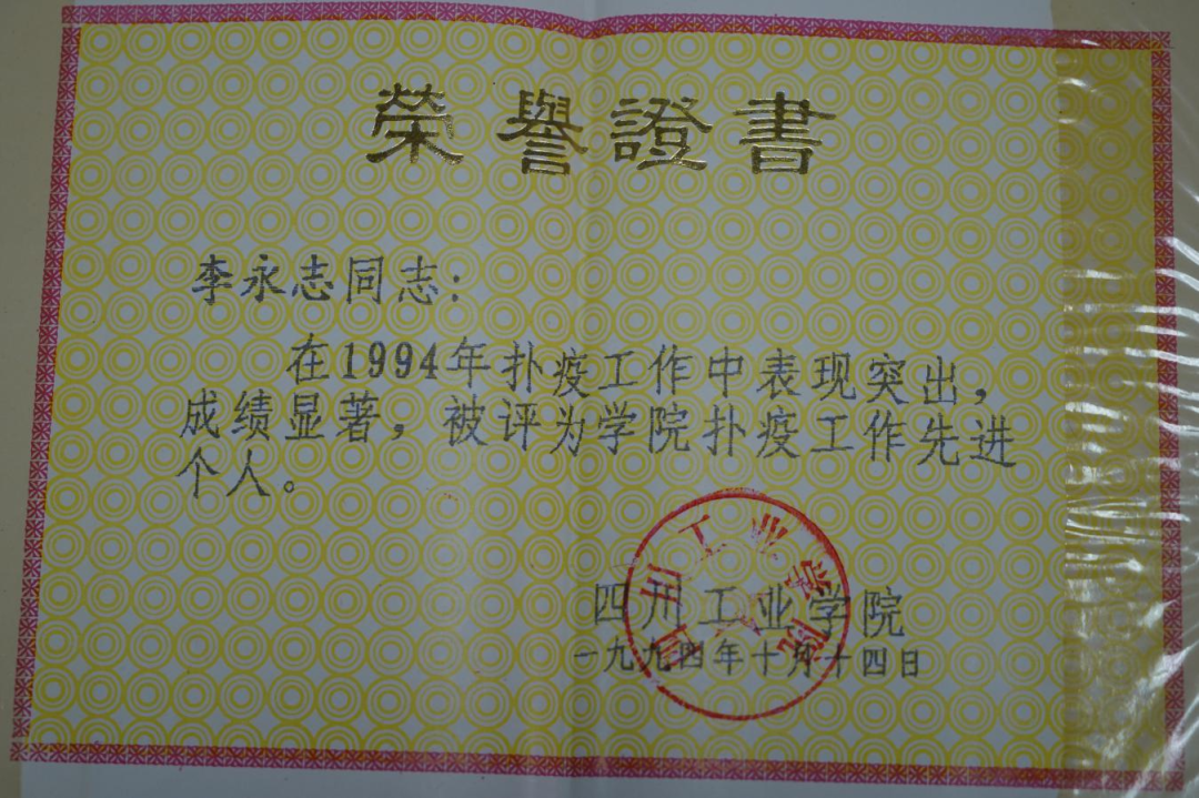 在1994年9月至10月,学校防疫(2号病)期间,李永志夜以继日的工作,在约两个月的时间里编撰印发了约12万字的《情况通报》、请示报告、总结等材料。