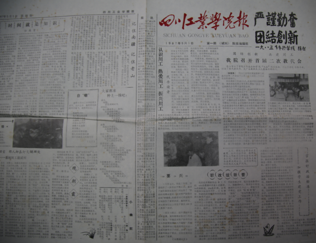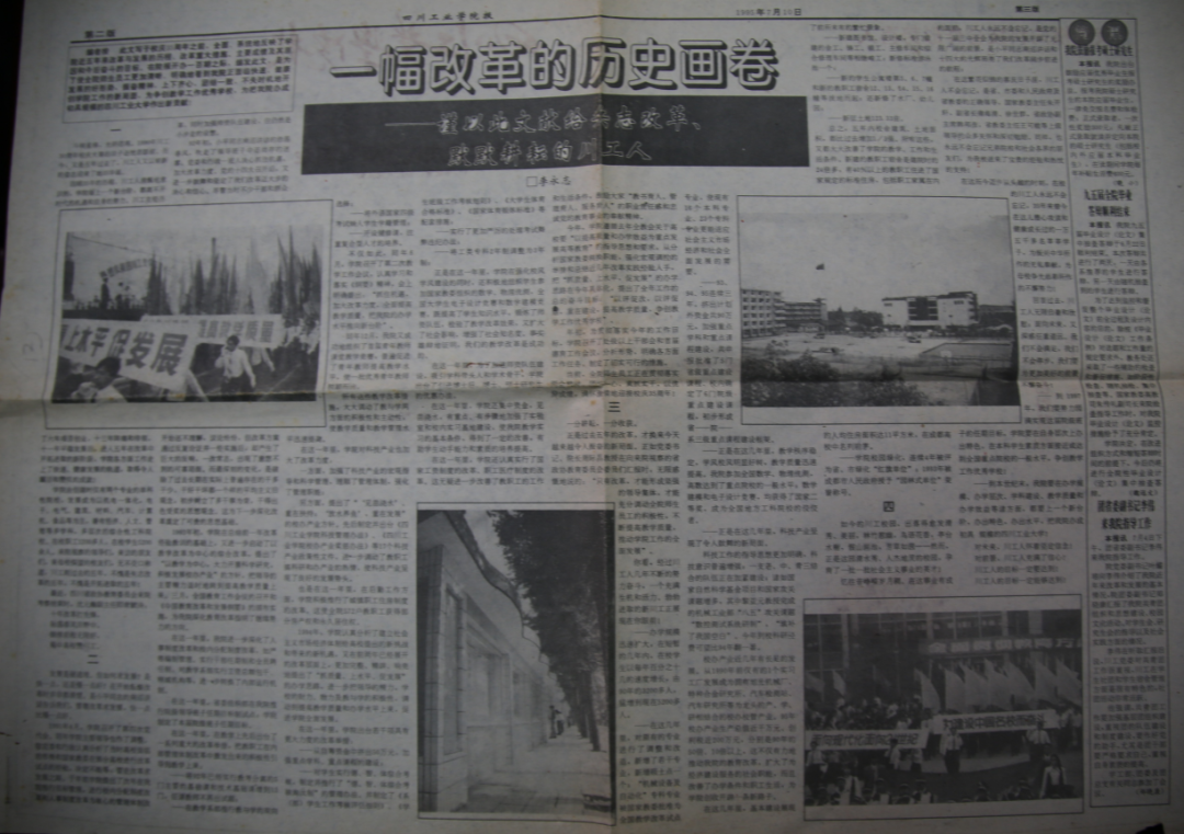 在校庆35周年华诞之际,他撰写的《“一幅改革的历史画卷”——谨以此文献给矢志改革、默默耕耘的川工人》一文在校报发表,文章深刻的总结和热情的赞颂了川工人5年来教育改革的丰硕成果,鼓舞了师生,并受到校外同行的广泛赞扬。1987-1999年他任主编的12年期间,坚持党的办报方针,坚持“党政喉舌,师生知音”的办报宗旨,为学校的改革发展、传播知识和教书育人做出了积极的努力与贡献。